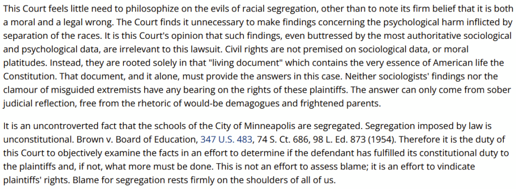 Dept. of “Justice,” just how does this policy affect the public? Are there applicants standing in line applying to teach in Minneapolis Public Schools, and not being hired? If so, I’d imagine they’d be Plaintiffs. Do tell, specifically how is your lawsuit in the public interest?