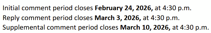 First, the Comment period, put it on your calendar: