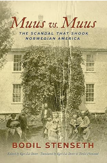 This book was first published in Norway, in Norwegian, by Bodil Stenseth as Fru Muus’ klage : Ekteskapsskandalen som rystet det norske Amerika. Kari Lie Dorer did extensive research here on this side of the Atlantic in the heart of Norwegian Synod land, many first hand accounts in letters, and so many newspaper articles, she’s also spoken with some Muus relatives, and she added a lot of material to the book. It’s published only in Norwegian, and it’s available online: