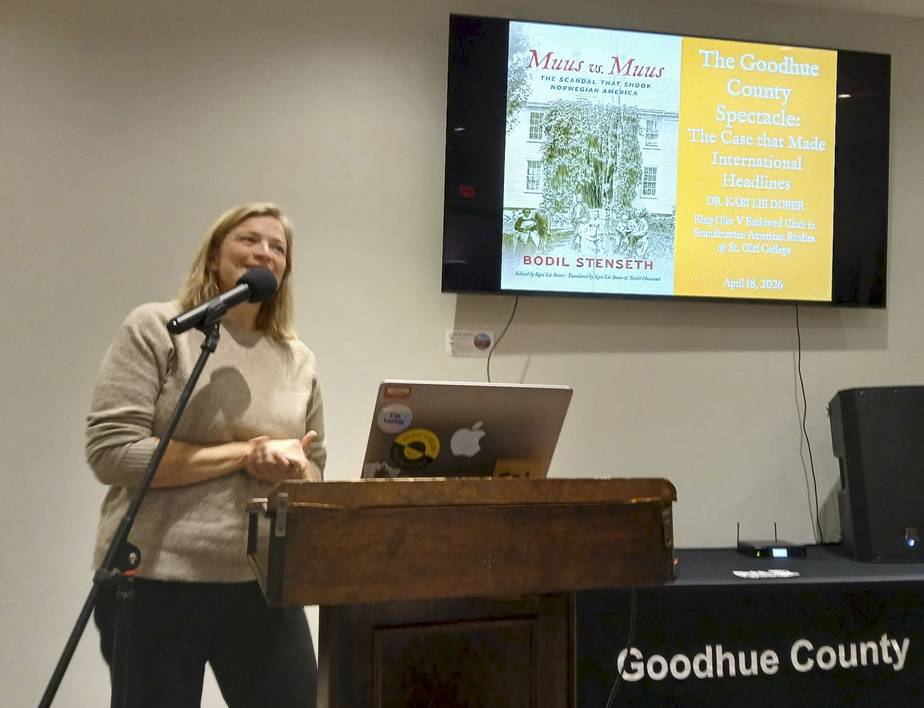A great presentation yesterday at the Goodhue County Historical Society by Kari Lie Dorer (yes, THAT Dorer, of Richard J. Dorer Memorial Hardwood State Forest, she married into the family!) from St. Olaf, Professor of Norwegian; King Olav V Chair in Scandinavian-American Studies; Department Chair of Norwegian; Director of Nordic Studies. She has a really interesting and varied background, from years at Concordia language camp (which looks really interesting!), and even Sami studies.