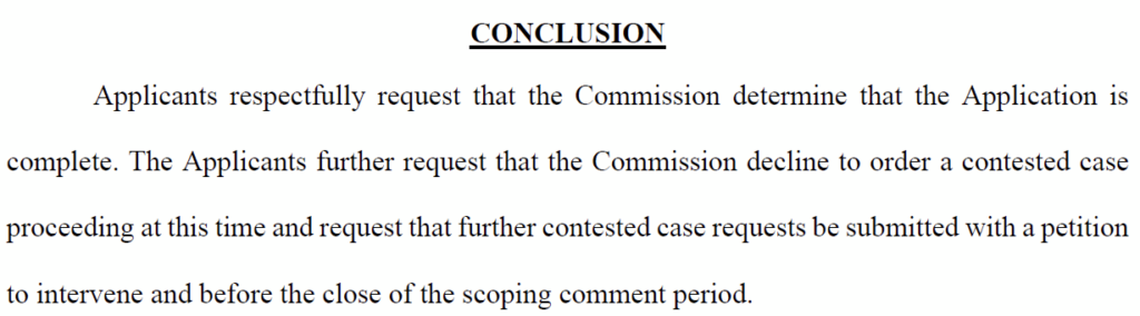 - A stay? Wonder where that idea came from? See CN-25-121, where Applicants ask for a stay until the route application is filed. Reply Comment, p. 2 (“With respect to the process by which the Application should be considered, as discussed in Section I below, the Applicants request that the Commission stay the Certificate of Need Application and process it jointly with the Route Permit Application, which Applicants intend to submit this fall.” And “With respect to the process by which the Application should be considered, as discussed in Section I below, the Applicants request that the Commission stay the Certificate of Need Application and process it jointly with the Route Permit Application, which Applicants intend to submit this fall.” And “[a]s discussed previously, because this proceeding will be stayed until the Applicants submit a Route Permit Application in Fall 2026, the Applicants request that the Commission defer a decision on the procedural treatment of the Certificate of Need until that time.” And “Based on the Applicants’ agreement to stay the Certificate of Need Application until Fall 2026, the Applicants respectfully request that the Commission defer a decision on the process for considering the Certificate of Need Application until after the Route Permit Application is filed to ensure consistent proceedings and reduce public confusion.” See Gopher to Badger Reply Comment, 20263-228942-01, March 3, 2026.