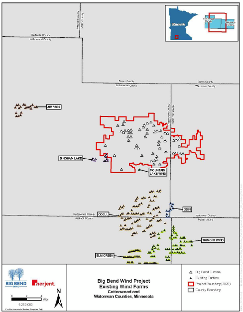 Big Bend Wind is in Cottonwood County – the permit was granted ages ago, was amended, and amended again, and it’s this 2nd permit amendment that is at issue: