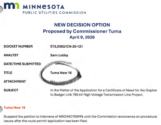 It was a LONG day at the Public Utilities Commission last Thursday, and here it is, almost Thursday again! The “Gopher to Badger” transmission line, PUC Docket CN-25-121, was #6 on the agenda.