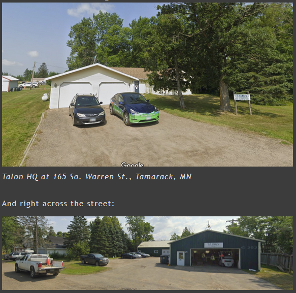 Here’s Talon HQ in Tamarack. Maybe next time I’m up visiting my friend in Tamarack I’ll drop in and say howdy!