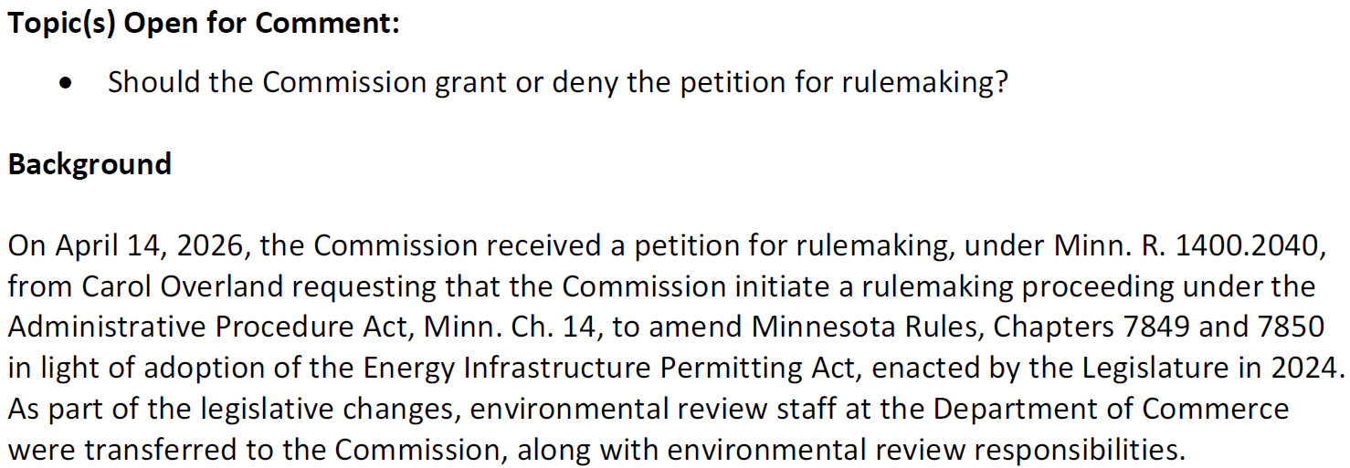 Rulemaking Petition – Minn. R. ch. 7850 & 7849 April 13th, 2026