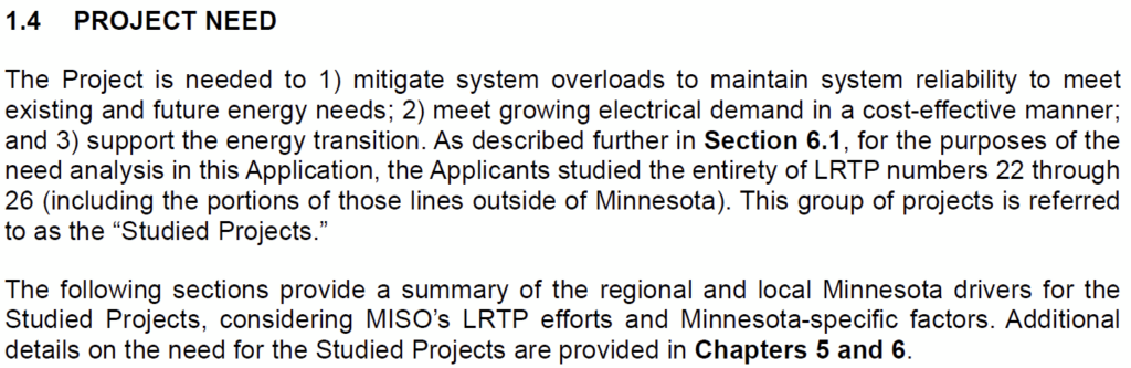 What’s odd is that they split the SE to WI up, which they didn’t for CapX 2020. The Minnesota Certificate of Need for CapX was the southern 345kV from SD to WI and also from Fargo to St. Cloud. These “two” 765kV projects are one and the same, their need case is EXACTLY the same, Sections 1.4 and Section 6. How stupid do they think we are? Well… in Staff Briefing Papers, pages 12 and 16-17: